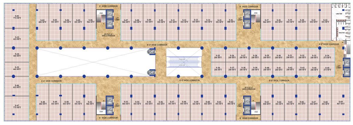 Shahabuddin Center name of a diversified lifestyle is one of the largest as well as the first of its kind situated in Gazipur, a constant evolving location in Bangladesh. Amidst all the shopping malls of this country, Fahad Builders has successfully comprehended all the needs and catalyzed into a focal point for fine dining, upscale shopping, and entertainment. With an unparalleled international shopping and living experience, the premise is segmented according to your needs as well as accommodated with 2 floors parking space with maximum security. From the ground floor to the fourth floor, you will find all the necessities to take your lifestyle a step ahead. To rejoice the shopping experience further, child gaming zone, food court and well decorated modern Cineplex available from fifth to the seventh floor.