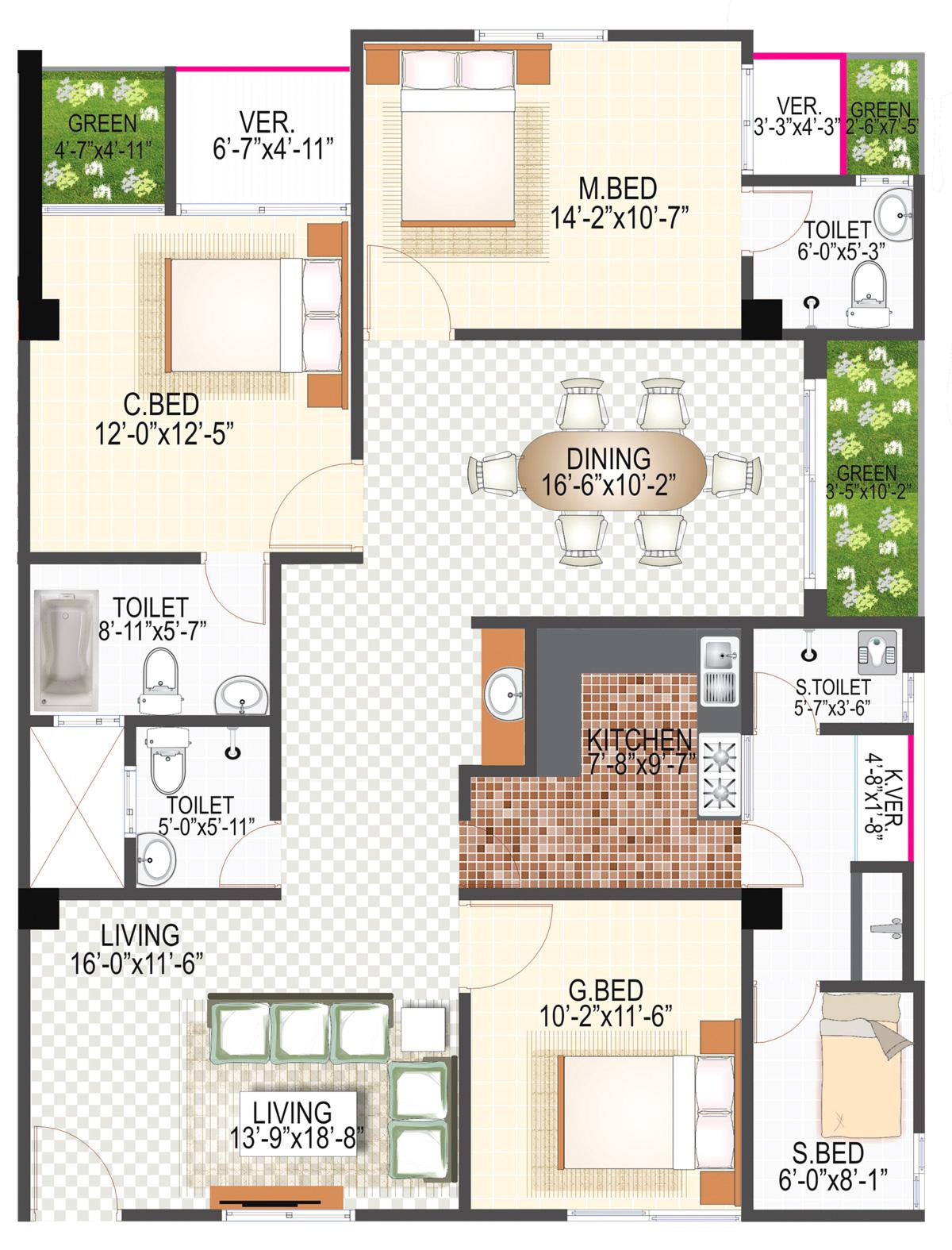Sky Residence amalgamated with luxury and greenery making it a place to embrace the true joy of living. Residence balcony enjoys a panoramic view and fresh air in the new-born urbanized city. To escape from the contaminated environment and all the harsh hassle in your life, this is the best choice to stay in a peaceful dimension.